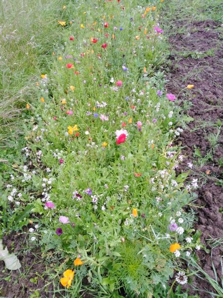 The first signs of the wild flower meadow on Chancery Road appeared in June
