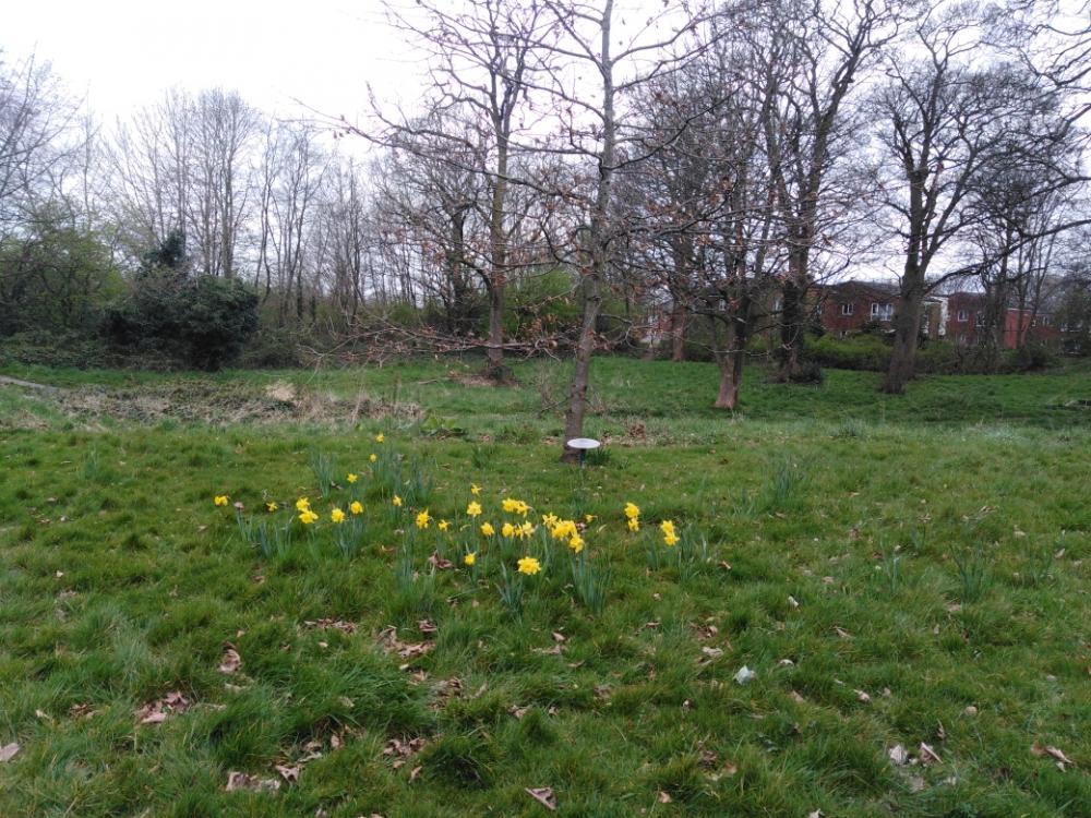 The new daffodils on the Green bloomed for the first time in April